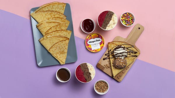 Deine Lieblingseiscreme begleitet von leckeren Crepes, Waffeln oder Gebäck.